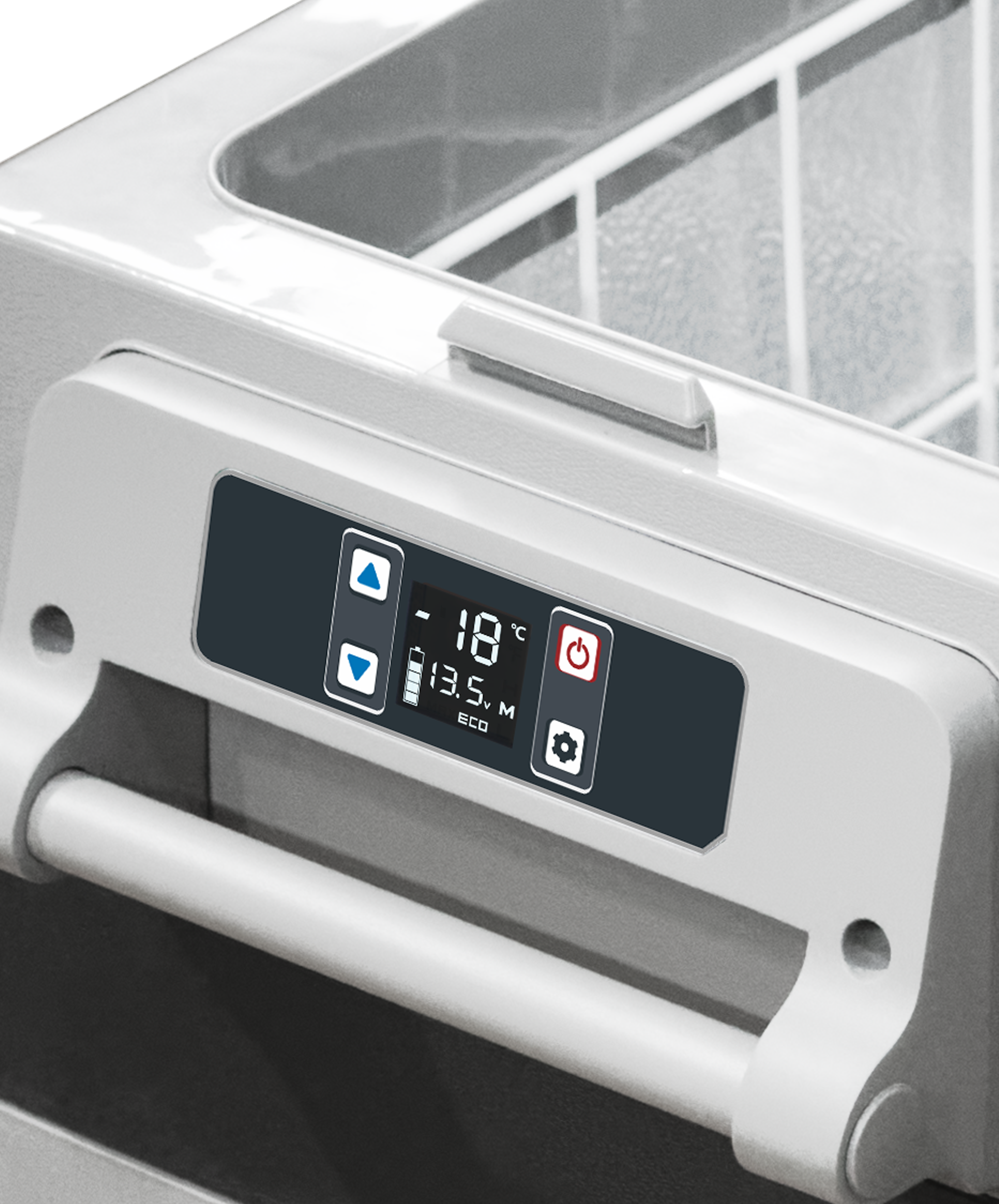 An LED screen with controls allows you to set the temperatures between -20°C